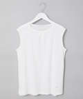 高級感のある光沢感がポイントのタンクトップ。前身頃のタックや、スリットのグログランテープ等のディティールにこだわりました。