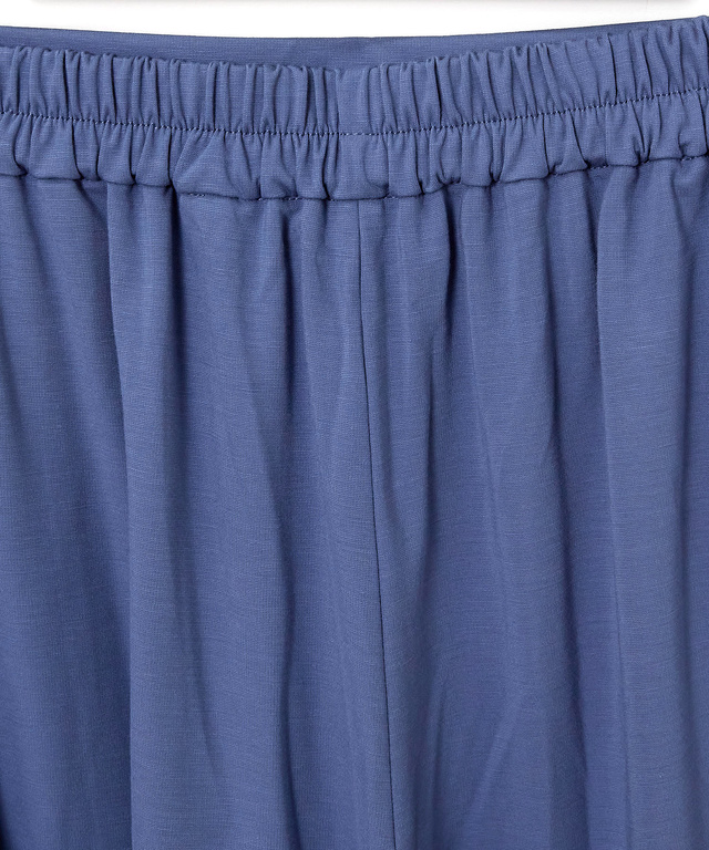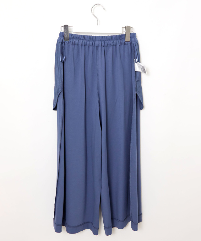 光沢がありキレイな表面感のスムース生地を使用したキュロットパンツ。スカート見えのする幅の広い裾がポイント。