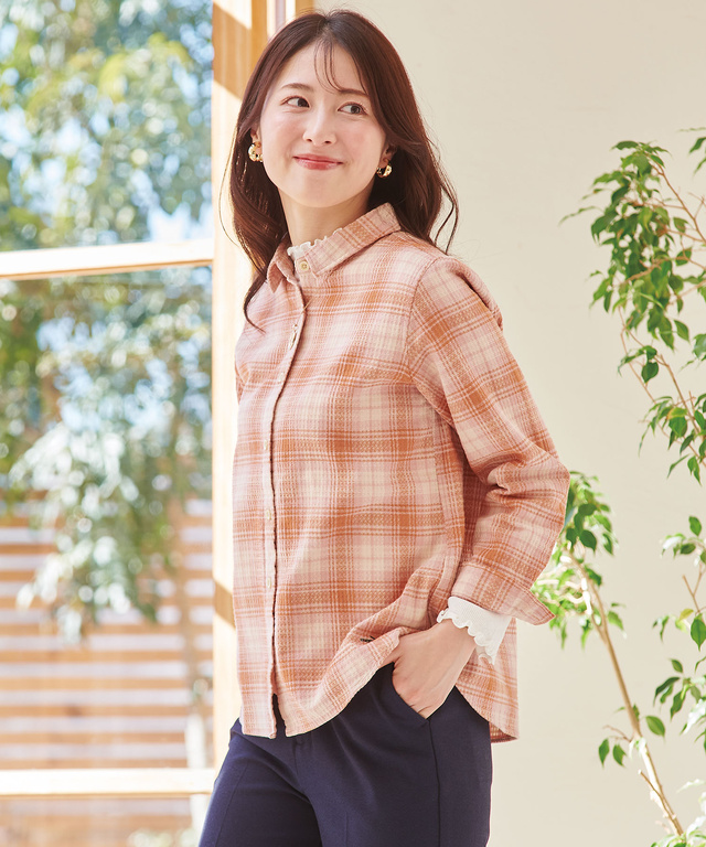 ドビー素材でチェック柄を表現し、立体的な生地を使用しています。 肉厚な生地で柔らかく、寒さが本格的な今の時期に活用してくれるアイテムです。