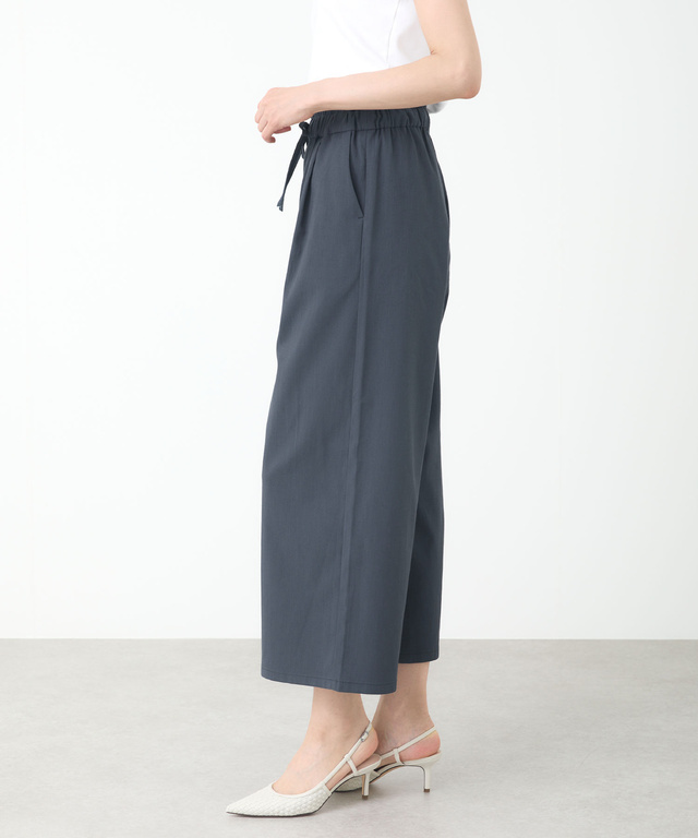 ウエストのリボンでサイズ調整が可能なイージーパンツ。麻が入っていてさらっとした清涼感のある素材を使用しています。