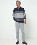 バスクボーダー調のパネルボーダー柄がスッキリと若々しい印象のプルオーバーです。ふっくらと編み立てた肌触りの良い天竺素材で快適な着心地のアイテムです。ブルゾンとのスタイリングに合わせやすいよう、サイズ感にもこだわりました。