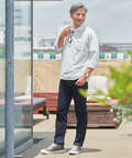 シャドーボーダー柄を無地調のポロシャツにデザインした七分袖のポロシャツです。スタリングに合わせやすいホワイトと、引き締まるネイビーの2色展開でご用意しております。