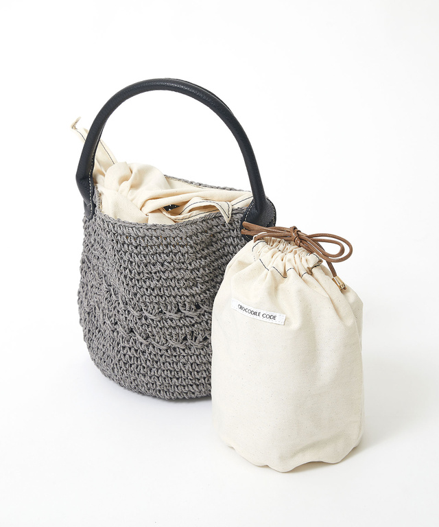 ペーパー素材で編み込んだ夏らしいバッグ。帆布の巾着袋と口を絞れる蓋付で持ち物を安全に守れます。