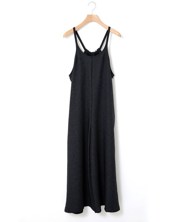 1枚で着こなしが決まる履きこみタイプの無地のサロペット。軽くて涼しく、丸洗いしてもアイロンが要らない素材を使用しているので、夏の暑い時期に着やすいアイテムです。
