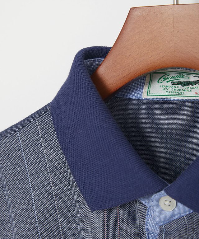 サッカー素材の前身頃にストライプ柄を用いた、春夏らしい涼しげな長袖のポロシャツです。さり気ないストライプ柄にしたことで、スッキリとした印象となっており、コーディネートを組みやすいアイテムです。