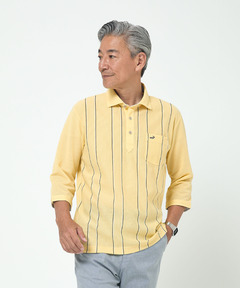 ストライプ柄 七分袖 ポロシャツ【吸汗速乾】