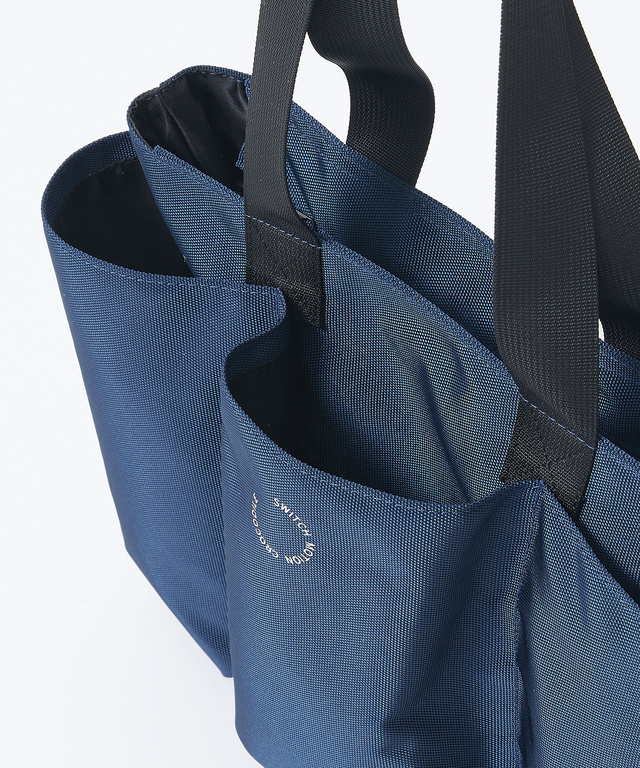 ブランドロゴがさりげないアクセントになったファスナー付きのトートバッグ。フロントには大きめのオープンポケットが3カ所付いており、収納力抜群です。