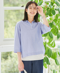 スノーコットン バックタック 七分袖ブラウス【接触冷感】