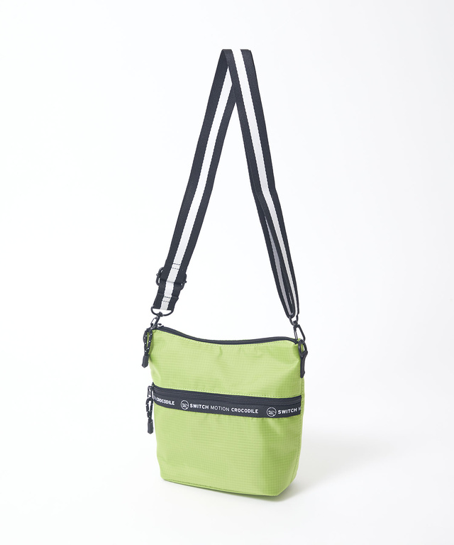 ブランドロゴのテープがポイントのショルダーバッグ。底部のマチが広く、収納力のあるアイテムです。