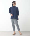スノーコットン生地を使用した、裾のシルエットに前後差をつけたプルオーバーチュニック。動きのある裾のラインと袖のディテールは軽やかでありながら、体型カバーにもなるシルエットになっています。