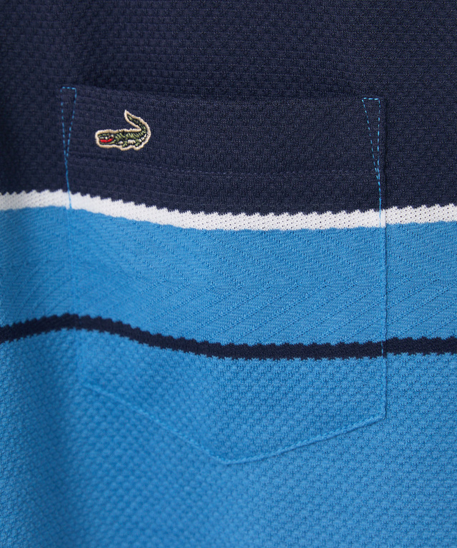 多数の編み組織で表現した地柄が入った大胆なカラーブロック生地が目を惹くポロシャツです。清涼感のある風合いと鮮やかなカラーリングで夏らしいスタイリングを楽しんでいただけます。