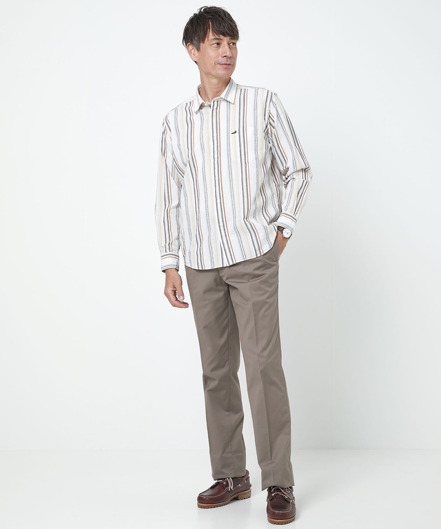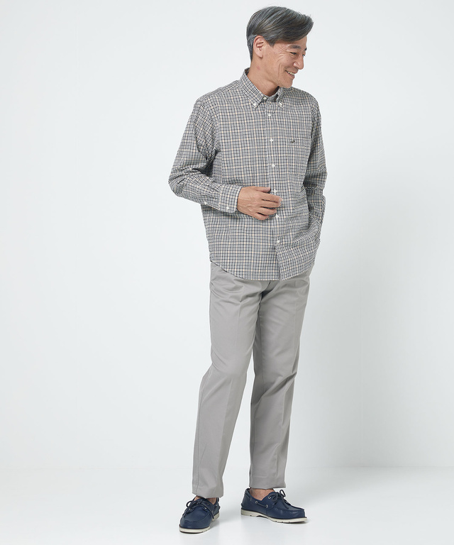ツータックの股上のゆとり感と『クレメル』と言う特殊紡績糸を使用した快適素材効果が相俟って履き心地が迚も良いです。