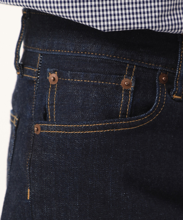 アメリカを拠点とするコーンミルズ社のデニムを使用した本格モデル。