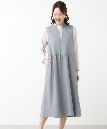ウールブレンド ハイネック ネップ ニットチュニック【…