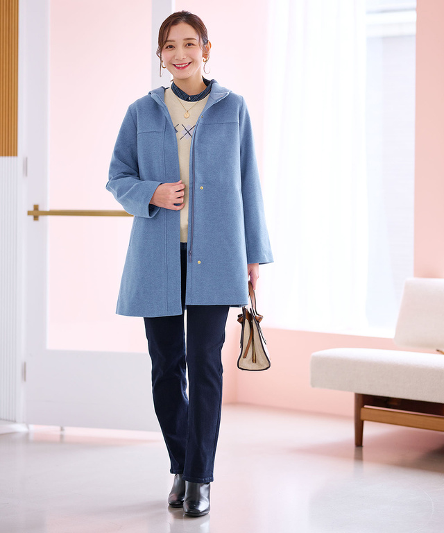 ウールライク フード付き コート 22,000円(税込) ブルー 詳しく見る