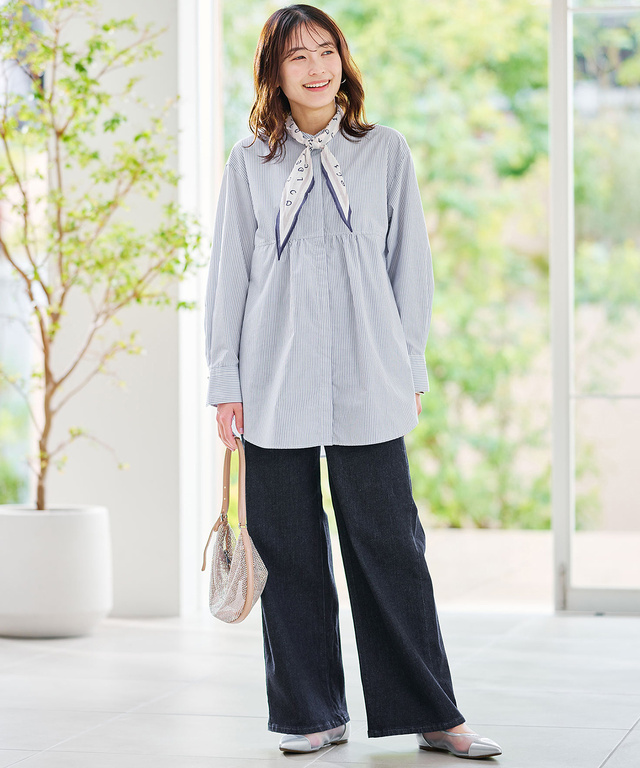 ギャザーデザイン ストライプ柄 チュニック 9,900円(税込) ブルー 詳しく見る
